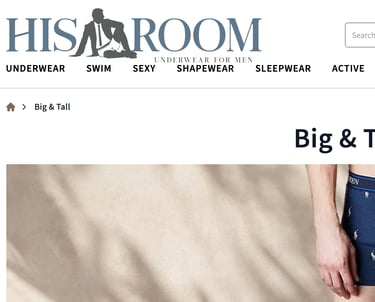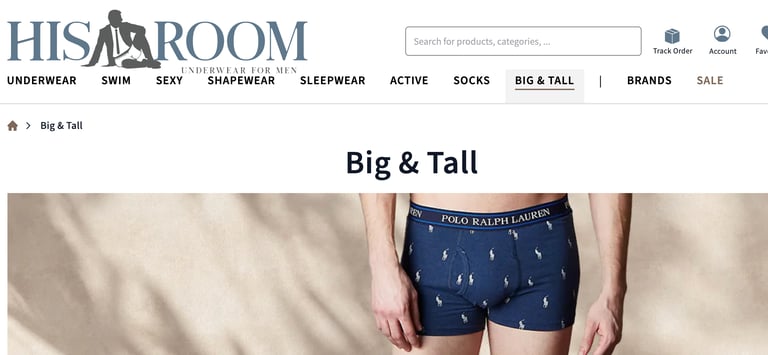 From boxer briefs to comfortable trunks, you'll find the ideal size underwear and sleepwear at His Room.